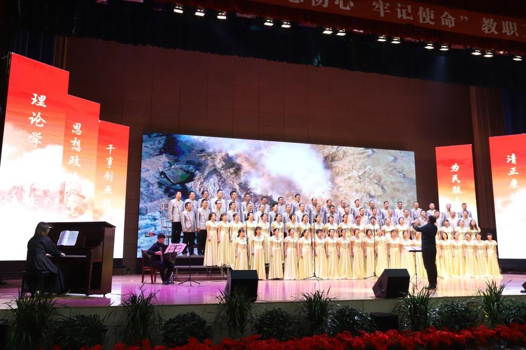 飞扬歌声吟唱初心岁月,经典旋律诠释使命担当。12月3日下午,阵阵嘹亮的歌声响彻兰州理工大学体育馆,由学校21个代表队参加的“不忘初心、牢记使命”教职工合唱比赛在这里举行。比赛现场灯光璀璨,气氛热烈、欢笑不断,参赛老师们以积极饱满的热情和高亢激昂的歌声表达了对祖国和工大的热爱之情和无限祝福。