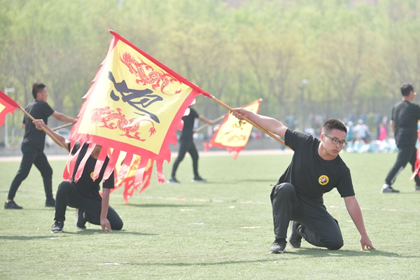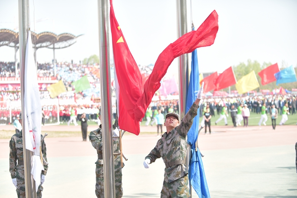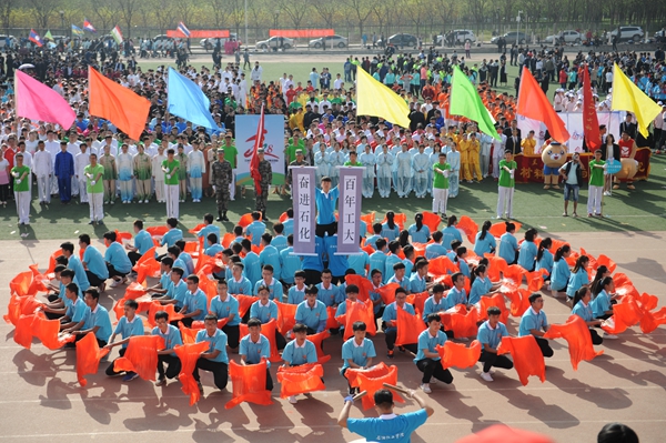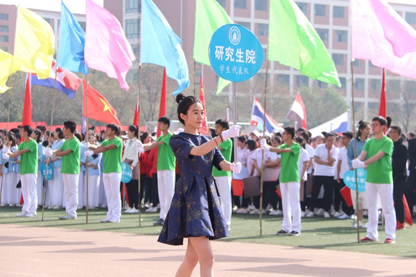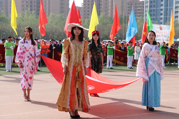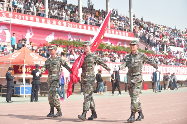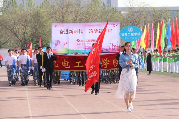 4月27日上午,兰州理工大学2018年体育运动会在西校区田径场隆重开幕。田径场上彩旗招展,伴随着激情高昂的运动员进行曲,国防生方阵护卫着庄严的国旗入场,运动会会徽、彩旗方队,裁判员方队,表演方队,各学院学生方队、教职工方队,迈着整齐的步伐依次入场。各方队各具特色的服装、队列、道具展现着各自的文化风貌和学科特色。
