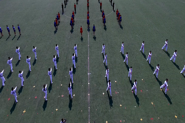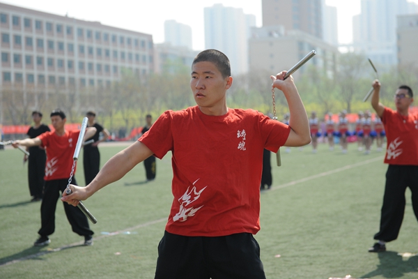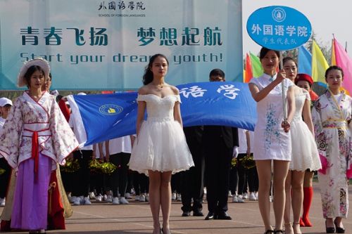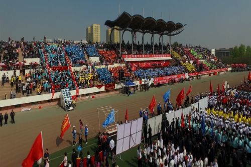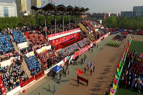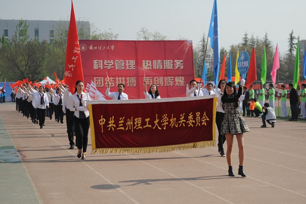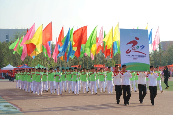 4月27日上午,兰州理工大学2017年体育运动会在西校区田径场隆重开幕。田径场上彩旗招展,伴随着激情高昂的运动员进行曲,国防生方阵护卫着庄严的国旗入场,运动会会徽、彩旗方队,裁判员方队,表演方队,各学院学生方队、教职工方队,迈着整齐的步伐依次入场。各方队各具特色的服装、队列、道具展现着各自的文化风貌和学科特色。