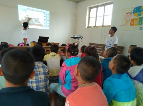 环境保护协会“春泥计划”支教行动团队员正在给贫困村小学生授课