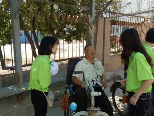 机电学院“我们爱夕阳—关爱老人”服务团队员们与孤寡老人在一起。