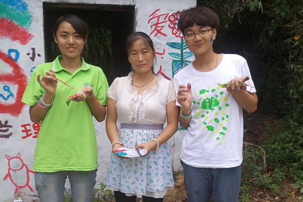 “甘肃省文县环境教育项目”服务团的队员们给村里脏旧的垃圾房换上了新装