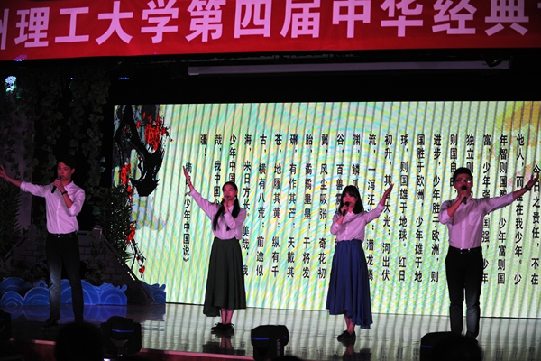 5月26日晚,“五月的鲜花•兰州理工大学第四届中华经典诗词朗诵大赛”决赛暨颁奖典礼在西校区大学生活动中心隆重举行。在优美的背景音乐中,中外选手们或慷慨激昂,或深情诉说,或仰天畅吟,抒发对中国传统文化的热爱之情。