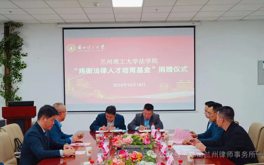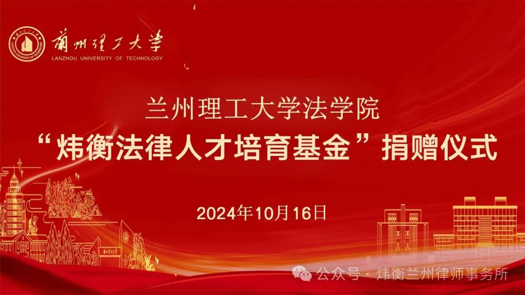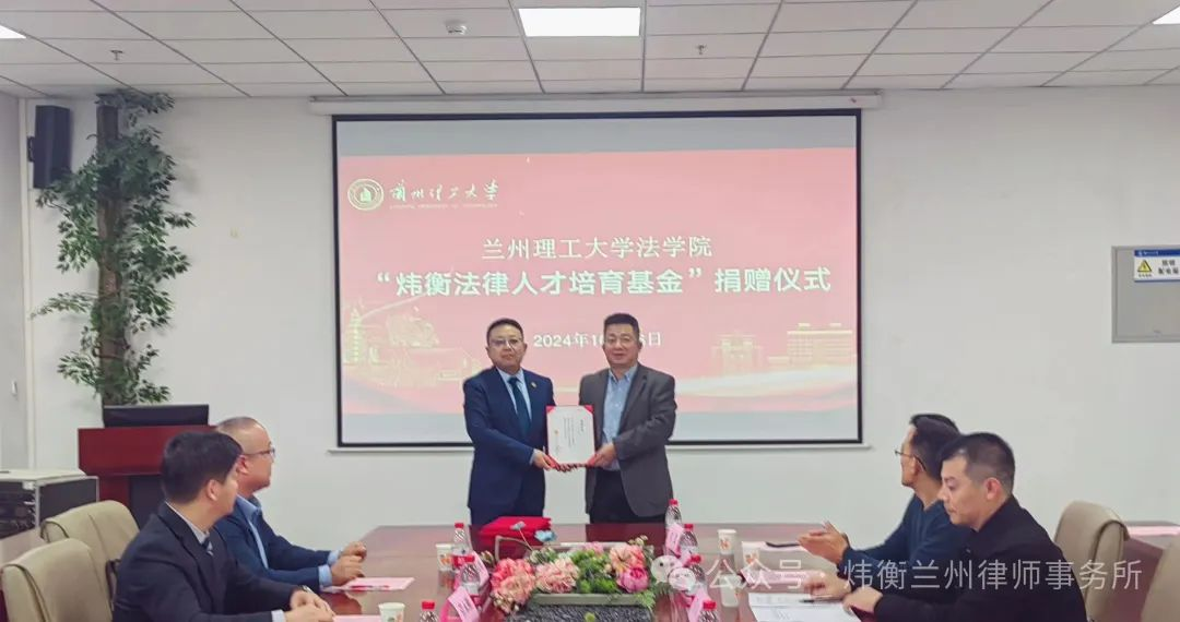 2024年10月16日,“炜衡法律人才培育基金”捐赠仪式在兰州理工大学法学院成功举办。炜衡兰州所主任秦晨,高级合伙人张润丁,合伙人张彦明、管永刚,专职律师魏玲,兰州理工大学校友总会办公室主任、教育发展基金会理事长马栋林、法学院党委副书记、副院长孔德瑞,法学院党委副书记程山,法学院研究生教育中心主任、教授原新利,法学院知识产权系主任、副教授穆永强,法学院法学系主任、副教授欧俊,文学院老师郭凯峰出席仪式。