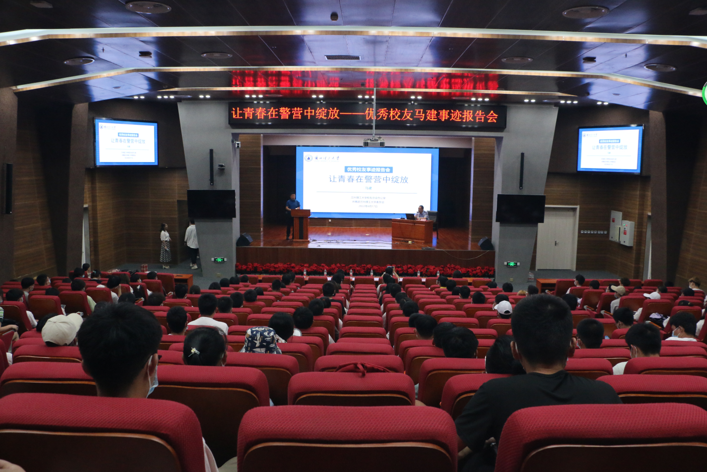 报告会上,马建以“让青春在警营中绽放”为主题,从自身学习与工作经历出发,生动讲述了从一个普通的大学生,成长为一名光荣的人民警察的故事。他用从警18年间经历的一个个真实的案件讲述了,在遇到危险时,他始终怀着战胜邪恶势力的大无畏勇气,冲锋在前、勇于亮剑,机智勇敢、从不退缩;面对生命安全受到威胁的群众,他挺身而出,义无反顾,让同学们看到了一名人民警察的责任与担当。
