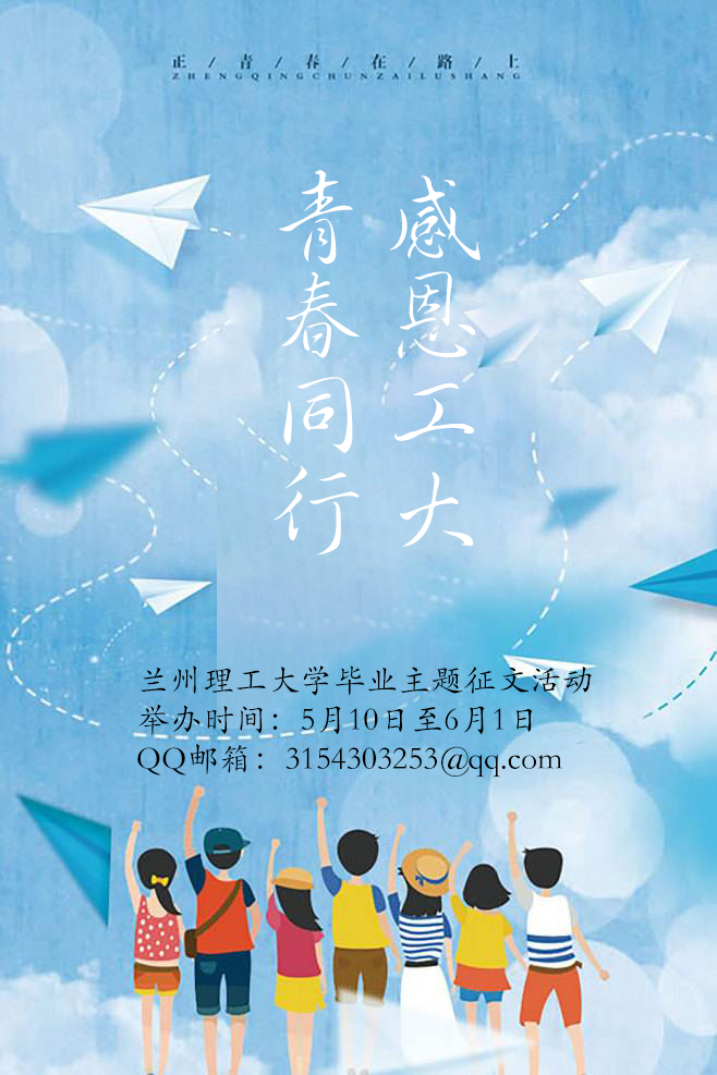 大家好!兰州理工大学2022届毕业生即将告别丰富多彩的大学生活,开启人生的新征程,回顾在兰州理工大学的多元体验,毕业生们都有着自己多重的理解和多样的经历。为进一步深化“三全育人”综合改革,培养校友情节,弘扬母校红柳文化,形成“在读生爱学校,毕业生怀念学校”的良好氛围,现面向2022届毕业生开展2022年兰州理工大学毕业季“感恩工大•青春同行”主题征文活动。