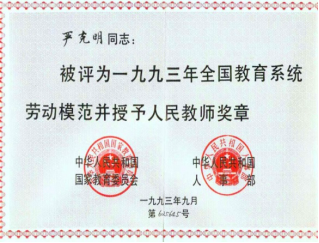在建校一百周年庆祝大会上,省委书记林铎为严克明老师颁发“教书育人特殊贡献奖”,颁奖词说:“他一生致力于数学教育研究事业,三尺讲台德教双馨,一腔赤诚奉献杏坛,是全国“人民教师奖章”的优秀答卷人。”(供稿:理学院)