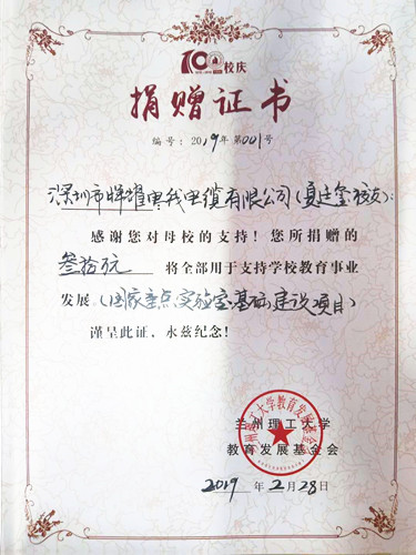 时值兰州理工大学百年校庆之际,兰州理工大学校友夏廷玺向母校捐赠液晶拼接屏一台,触摸查询机四台,设备总价值30万元,用于省部共建有色金属先进加工与再利用国家重点实验室基础建设,为改善实验室环境、促进学校教学科研事业的发展做出了积极贡献。现所有设备已正常投入运行。