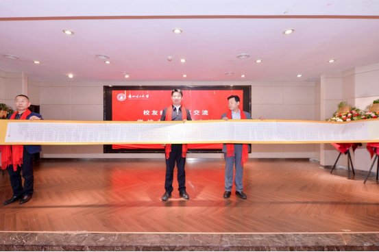 成立大会上,各地兄弟校友会纷纷致贺。陕西、福建、新疆、苏州、MBA校友会上海分会向兰州校友会成立赠送贺礼;北京、上海、黑龙江校友会代表致贺词,校友代表和学校参会嘉宾进行了经验分享与交流发言。兰州校友会代表全体在兰校友向学校捐赠书法作品,张立峰代表学校接受捐赠。这份特殊的礼物,承载着校友们对母校的深情厚谊和美好祝愿。